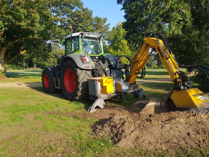 • Ausfräsen von Wurzeln mittels verschiedener Wurzelfräsen (Antriebsleistung 25 bis 280 PS).
