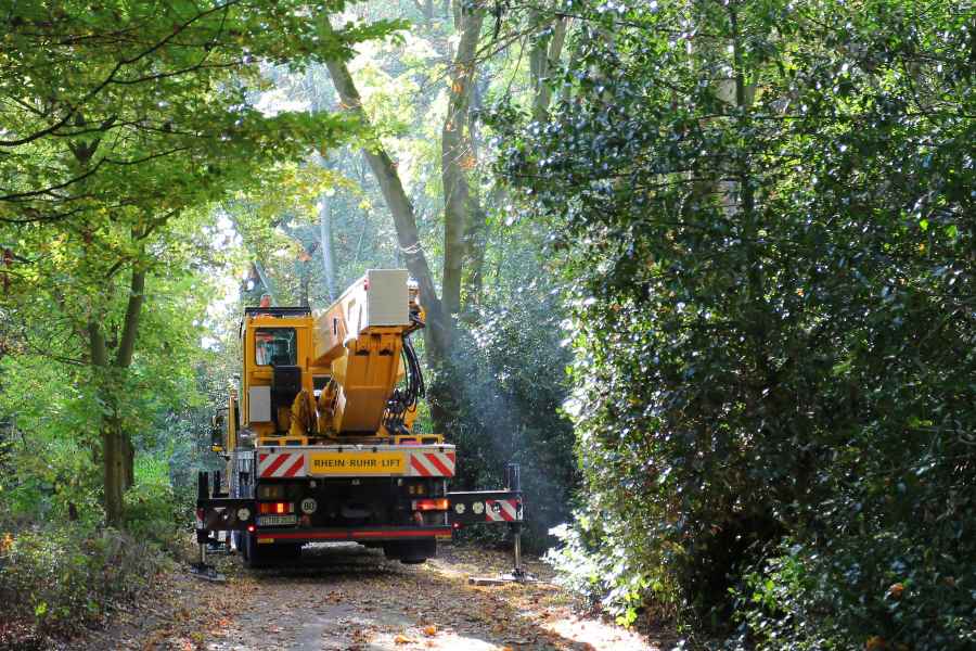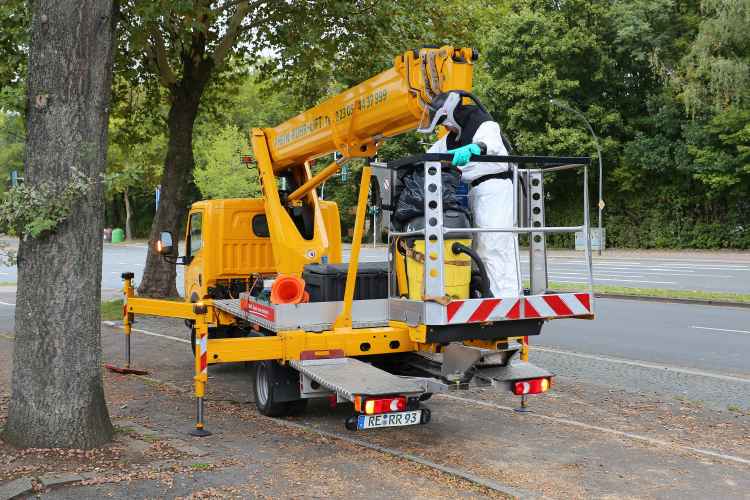 • Einsatz von LKW oder Raupenhubarbeitsbühnen, um alle Nester in den Baumkronen erreichen zu können
