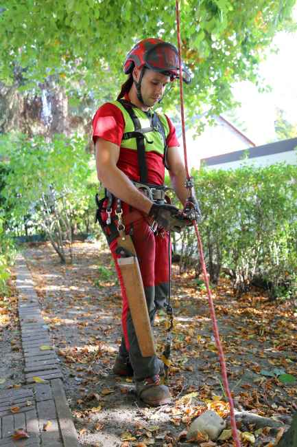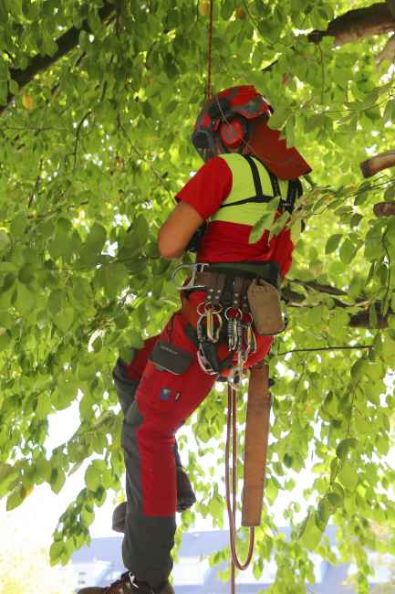 • Ausführung von Fällarbeiten in Bereichen, die nicht mit einer Arbeitsbühne zu erreichen sind, in Doppelseilklettertechnik.