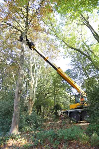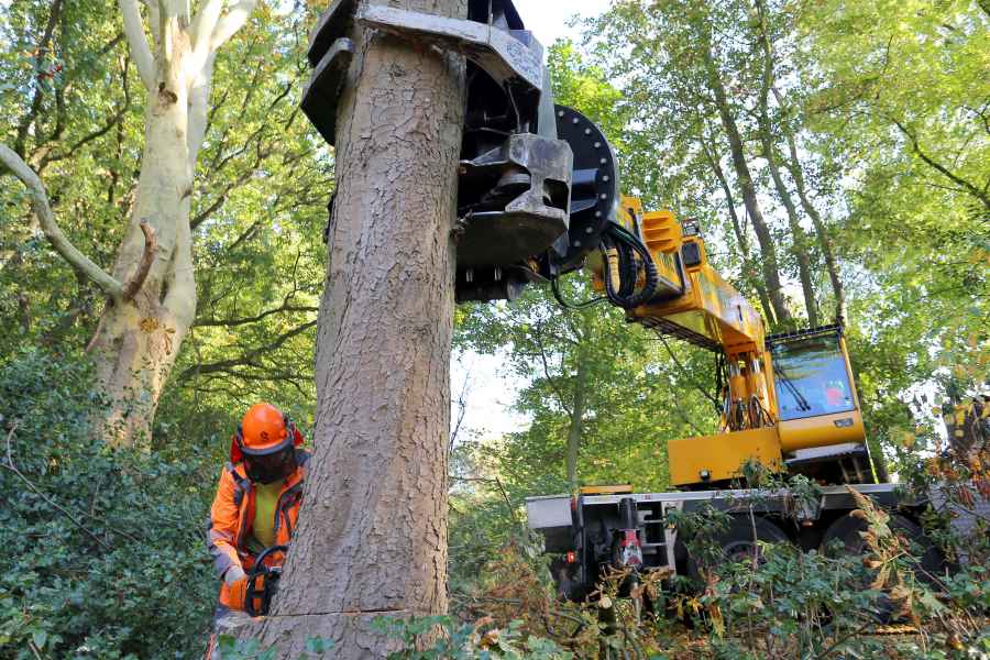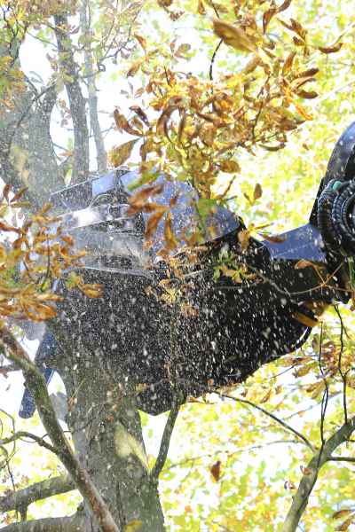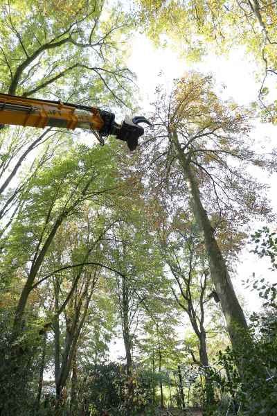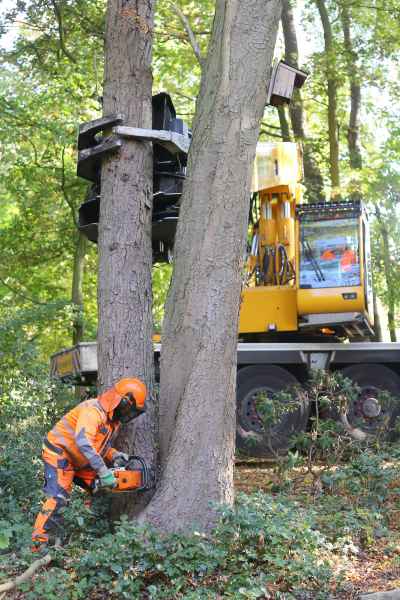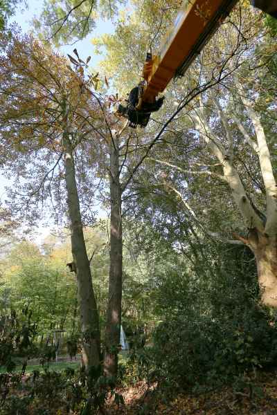 • Zwangsgeführtes, stückweises Absetzen von Kronenteilen oder ganzen Bäumen unter optimaler Schonung des Baumumfeldes