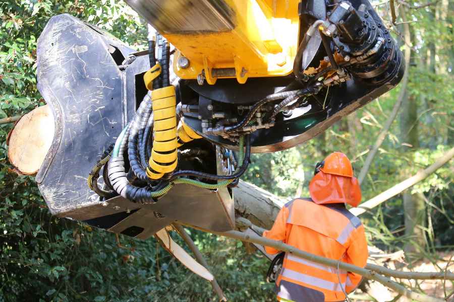 • 1 Kettenbagger, 20 t, wahlweise mit Wood-Cracker C350 oder Fällgreifer