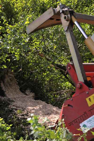 • Ausfräsen von Wurzeln in Gärten oder schwer zugängigen Stellen mittels handgeführten Wurzelfräsen mit einer Durchfahrbreite ab 75 cm und einer Frästiefe bis zu 55 cm.